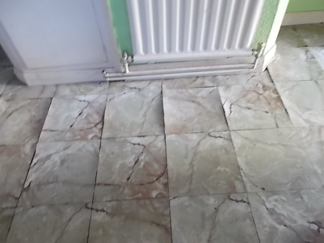 Lifting thermoplastic tiles were noted by our Chartered Surveyors during a Homebuyers survey in Burton on trent and Swadlincote. Our surveyors always treat lifting thermoplastic tiles with suspicion as they may be caused by dampness. There appeared to be an impervious membrane under these tiles suggesting that they are lifting due to poor bonding or a water spillage.