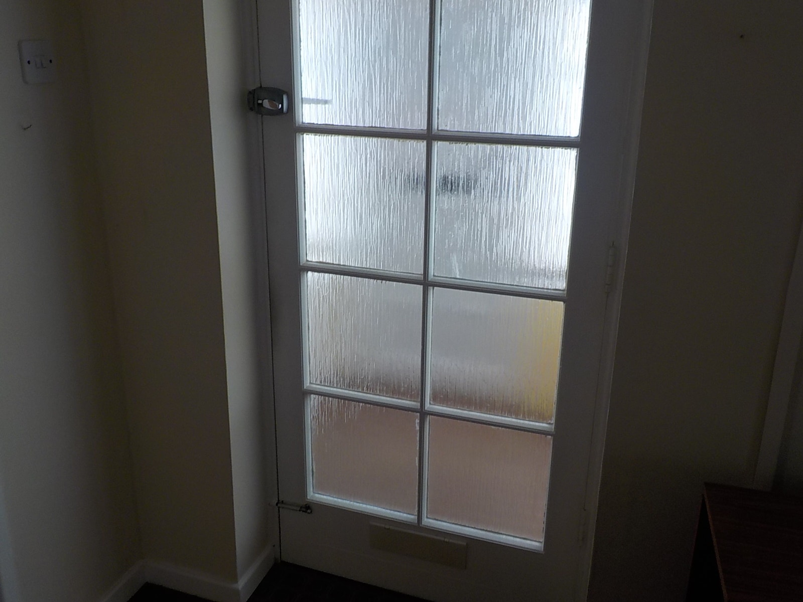 Surveyors in Burton on trent and Swadlincote came across this original 1960's door on a Homebuyers Survey in Burton on trent and Swadlincote. Our Chartered Surveyors advised that the glass was not toughened and poses a risk to anybody falling against it. All glass doors and glass panels below 80cm from the floor fitted in properties today have to have toughened glazing panels.