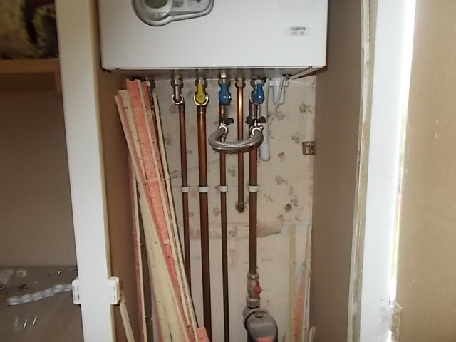 A Homebuyers Survey and Report by our Chartered Surveyors noted a missing earthing wire in Burton on trent and Swadlincote. The pipes under the boiler should have a cable with green and yellow sleeve connecting back to an earth. Lack of earthing makes it dangerous to use metal light fittings or switches and is likely to be indicative the system is dated or installed by an amateur.